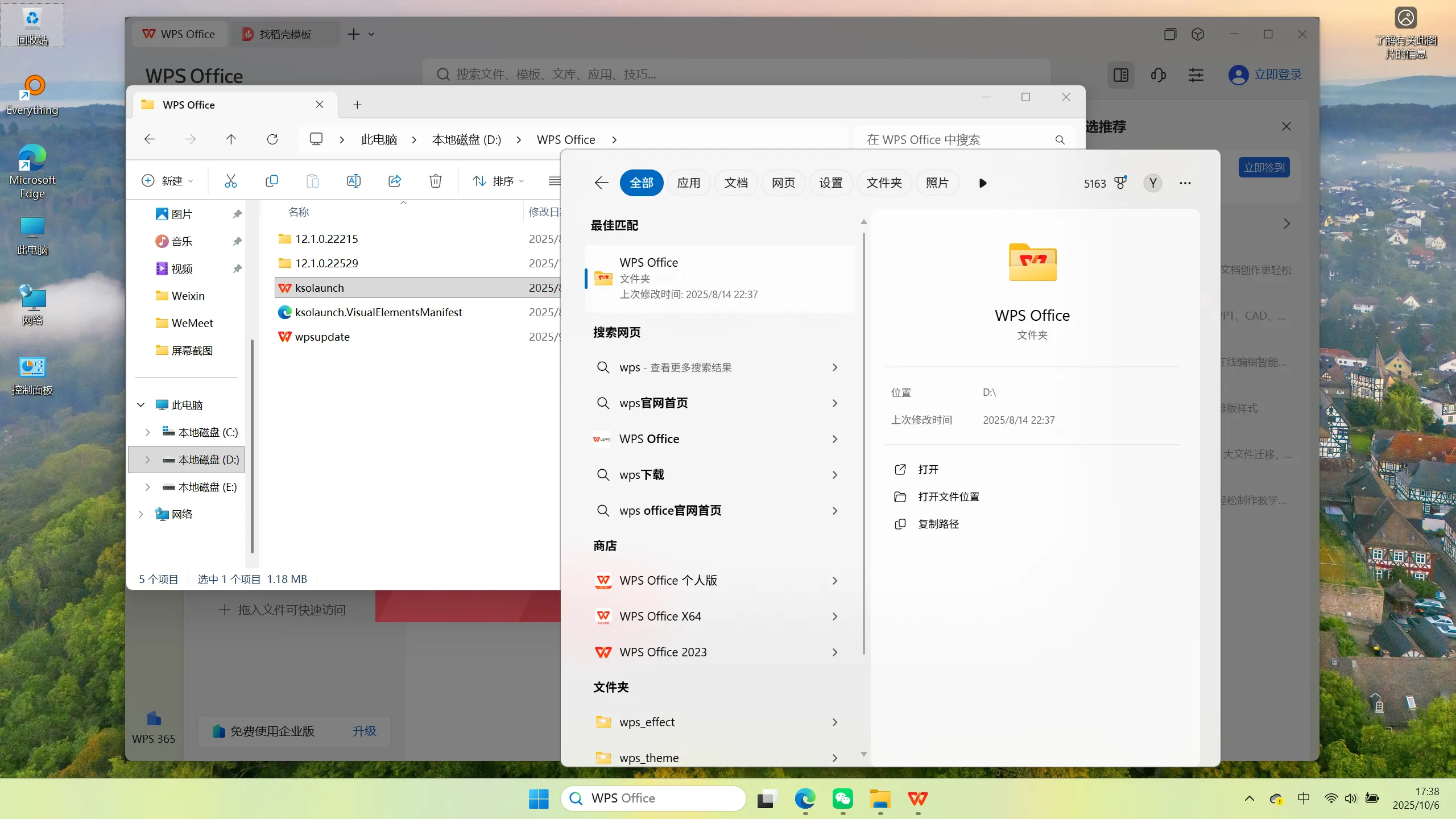 - 现状 1:D 盘WPS Office文件夹完好,双击wps.exe能正常打开文档;