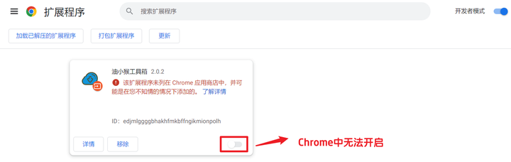 下面以安装 油小猴工具箱 扩展为例,提供 2 种解决方法: