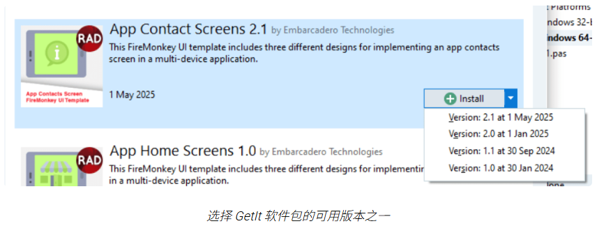 与 RAD Studio 核心安装集成,无需额外选项安装。