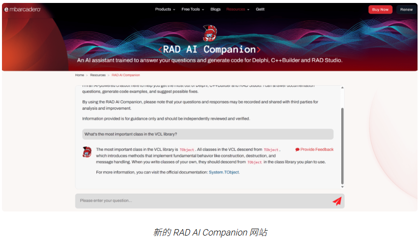 发布 RAD AI Companion 网站,专为 RAD Studio 开发者提供智能问答与代码生成。