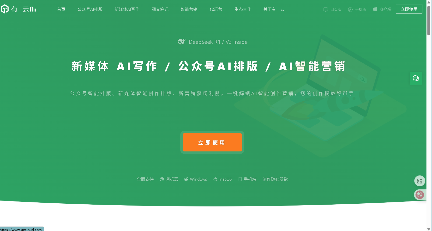 | 1 | 有一云AI编辑器 | ★★★★★ | 集AI写作、排版、配图、分发于一体,功能全面 | AI智能体内置360+AI应用,覆盖多场景 | 新媒体新手、达人、电商从业者、内容团队负责人等 |