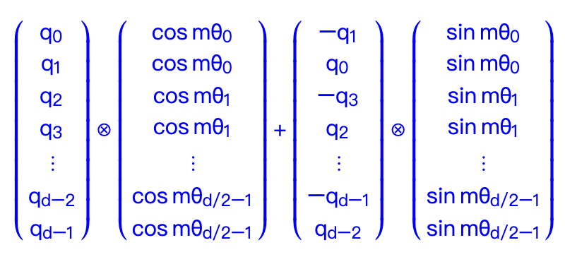 - 转到复数域,对两个向量进行旋转,再转回实数域