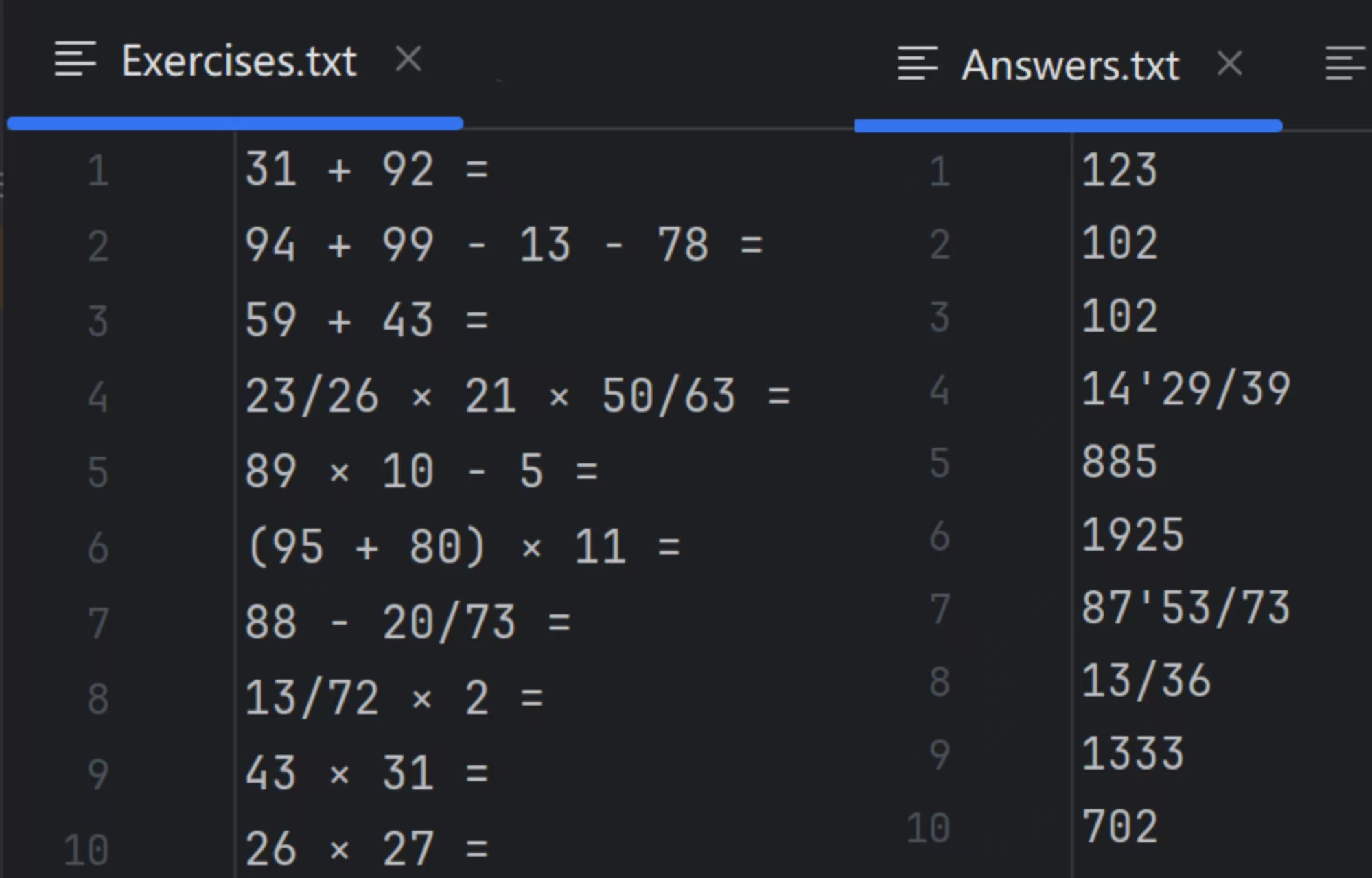 - 增加加法和乘法的概率(没有负数和真分数的限制),减少减法除法使用(避免产生负数和出现分数)