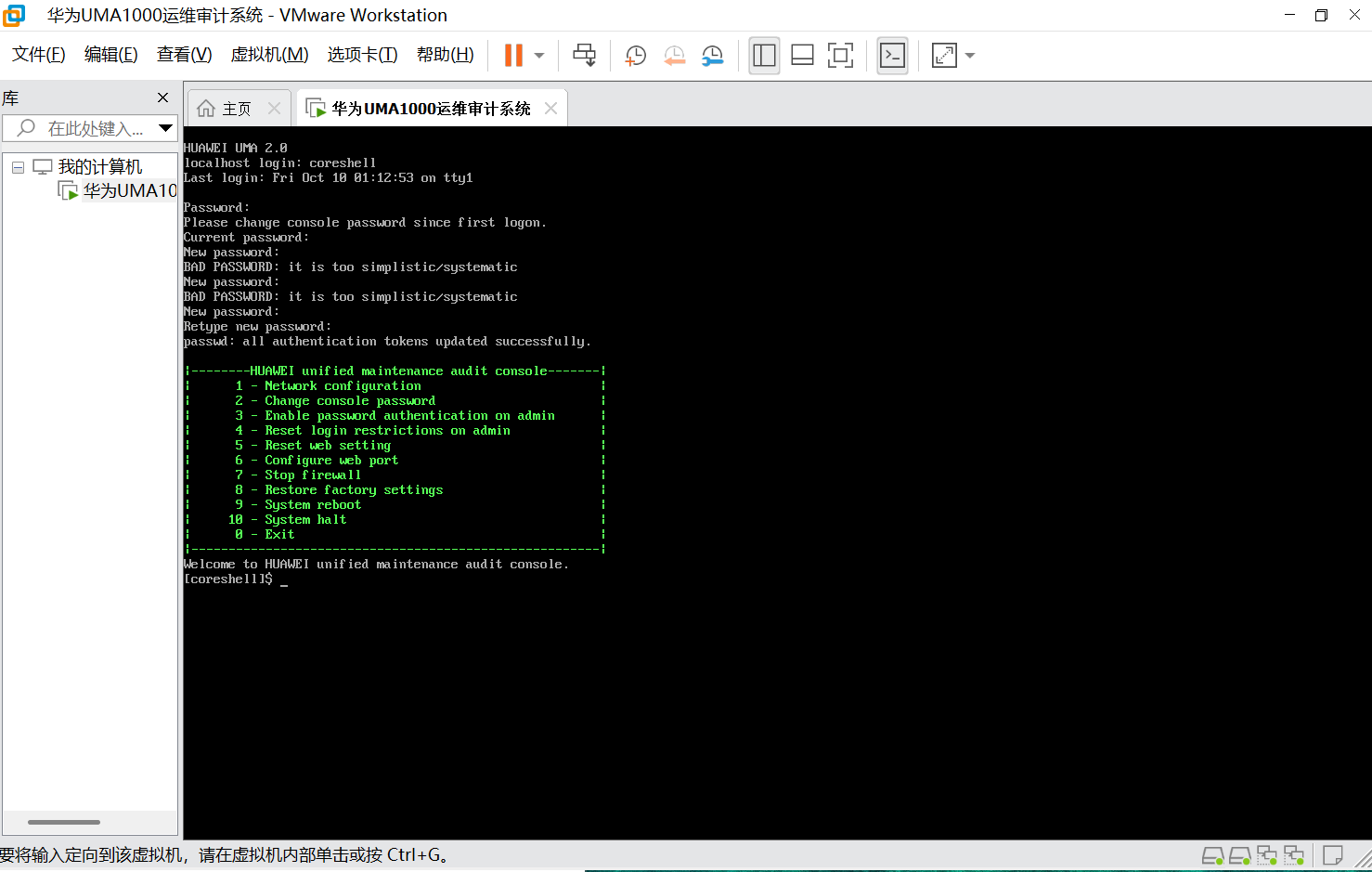 3、开机之后,默认的用户为coreshell,密码为Admin@123
