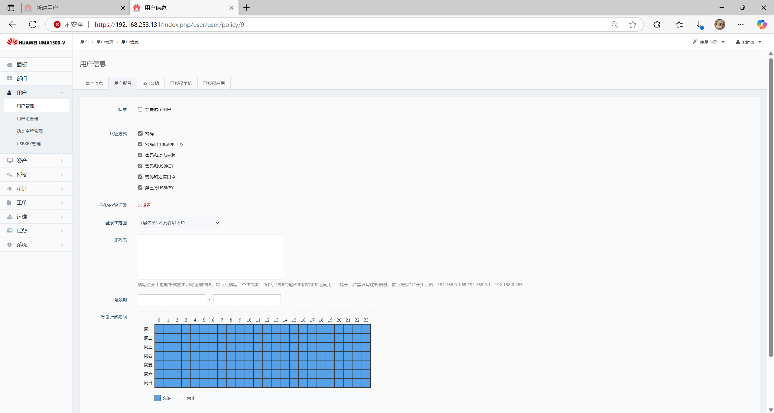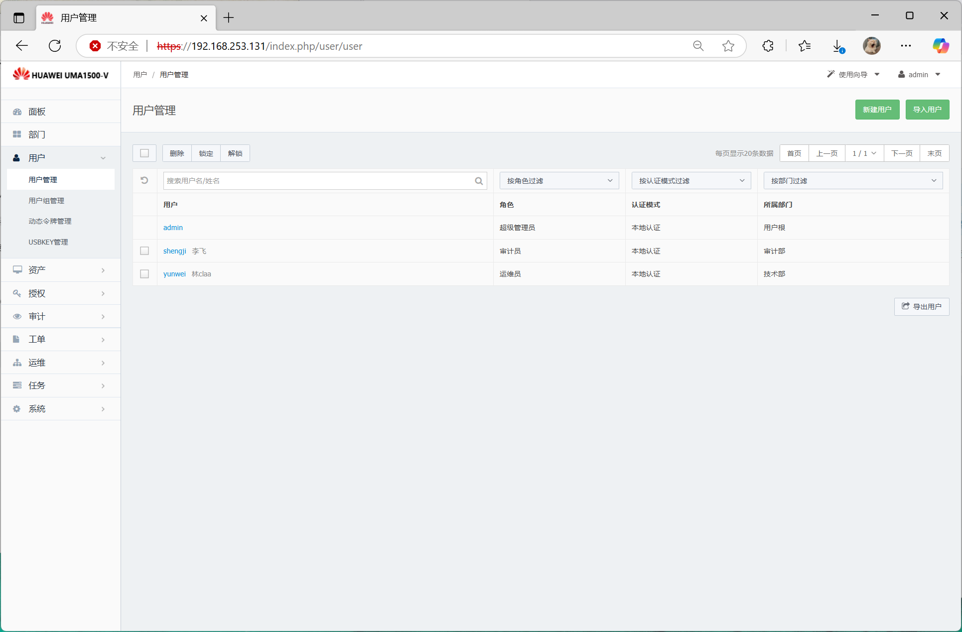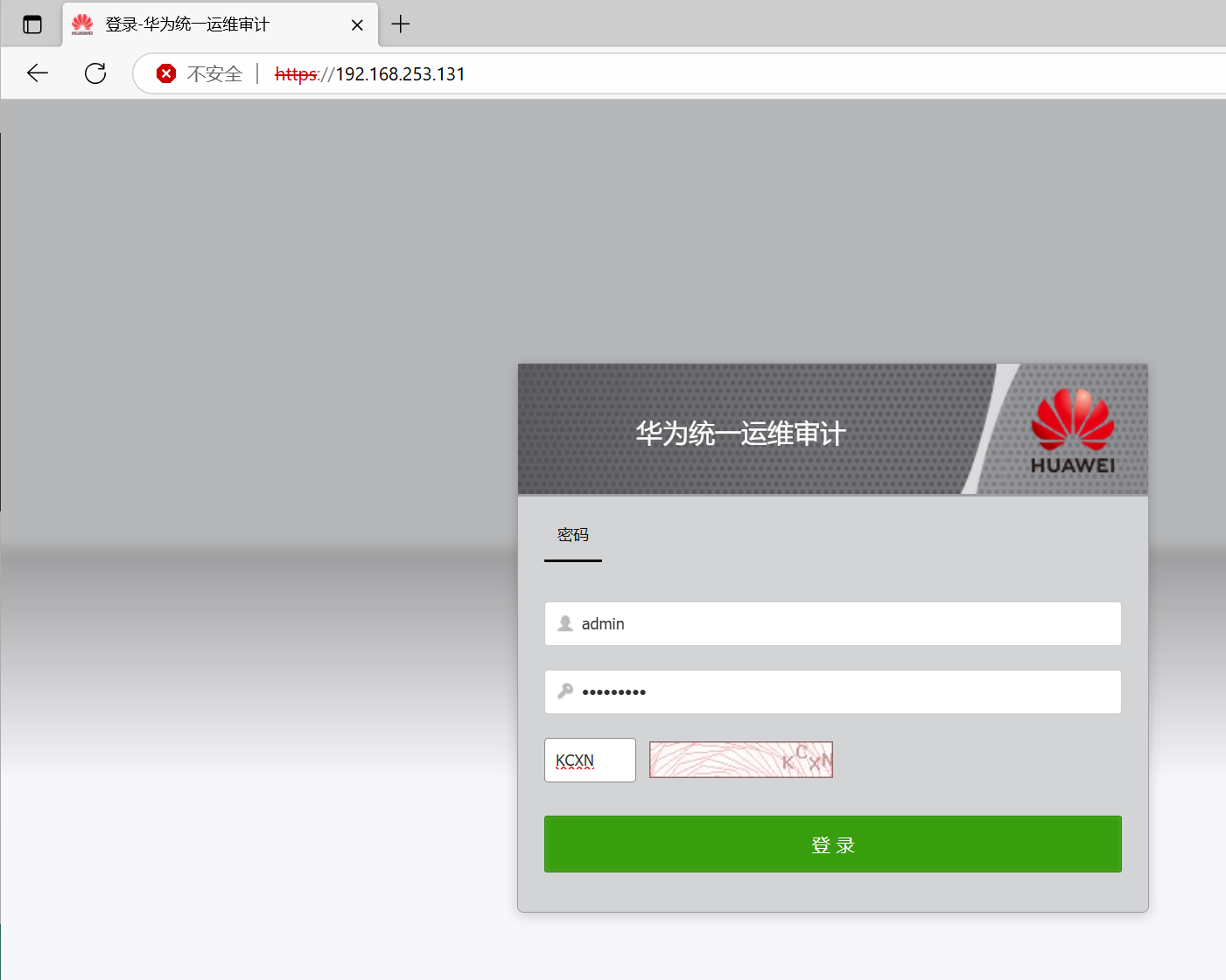 (https://ip),输入用户名和密码(出厂用户和密码为:admin/Admin@123)及验证码,单击