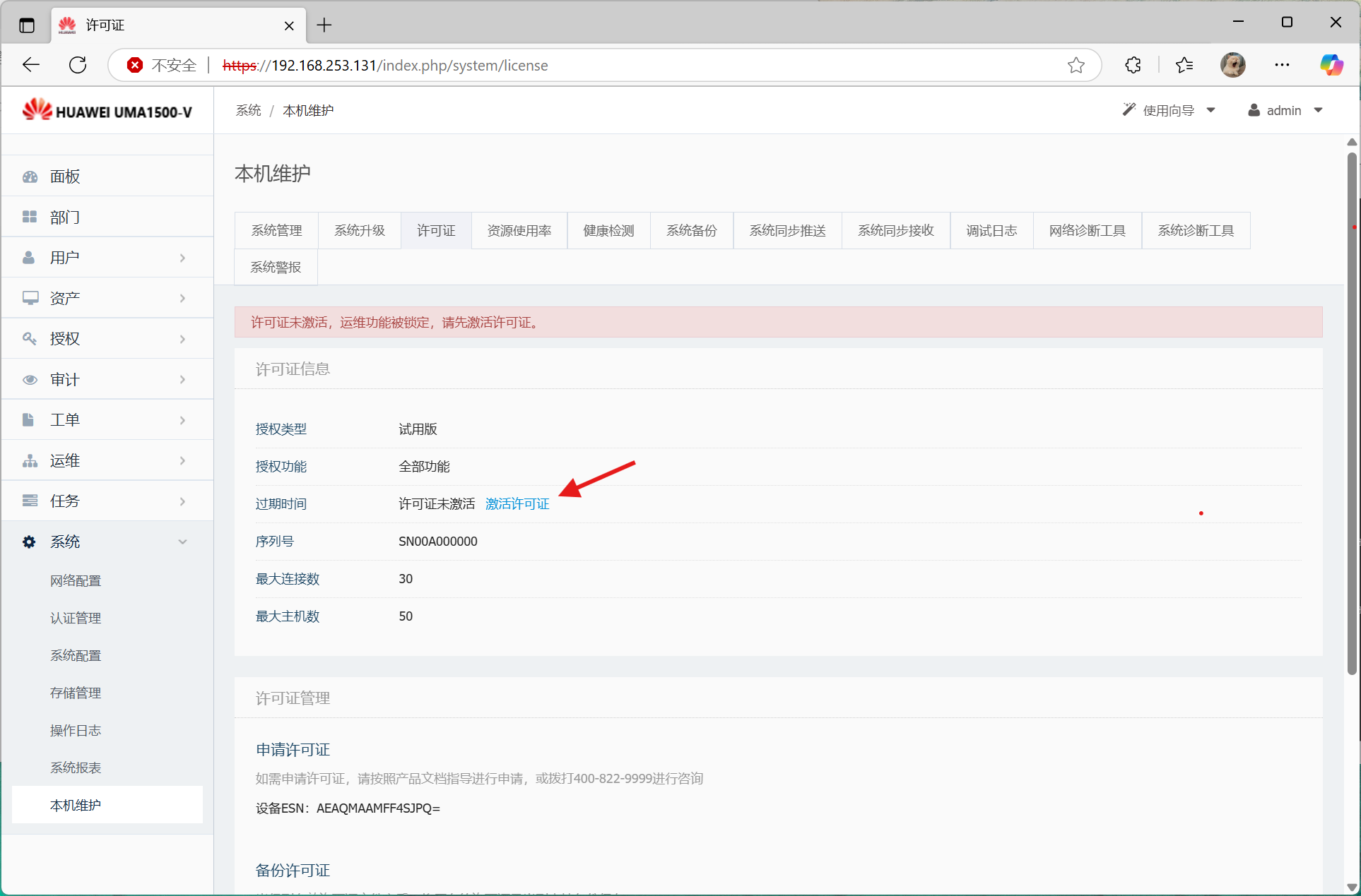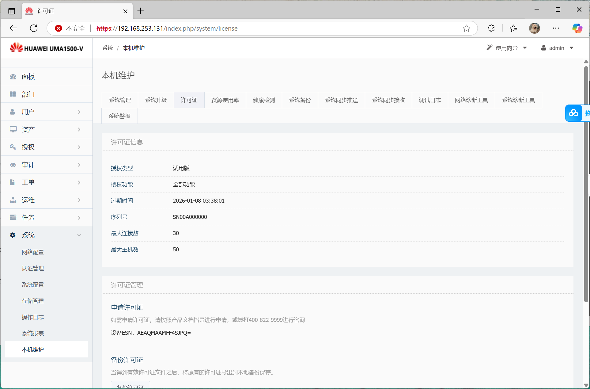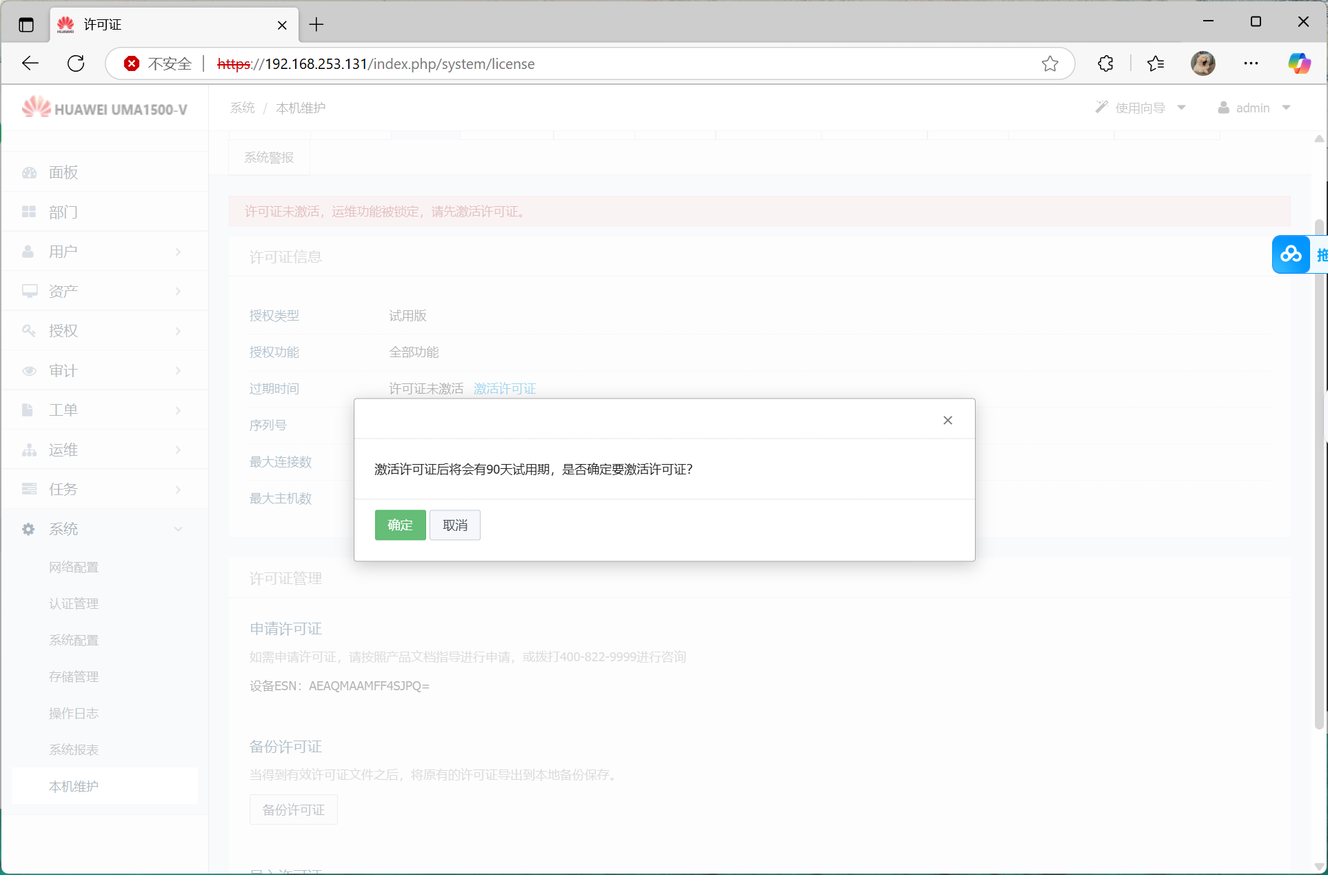 (https://ip),输入用户名和密码(出厂用户和密码为:admin/Admin@123)及验证码,单击