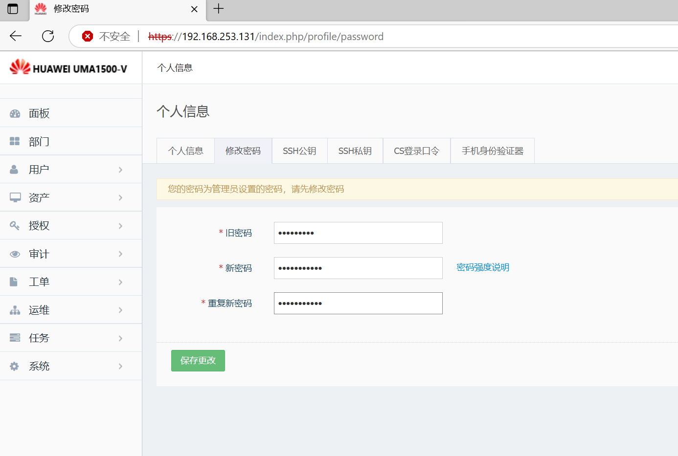 初次登录会提示更改密码