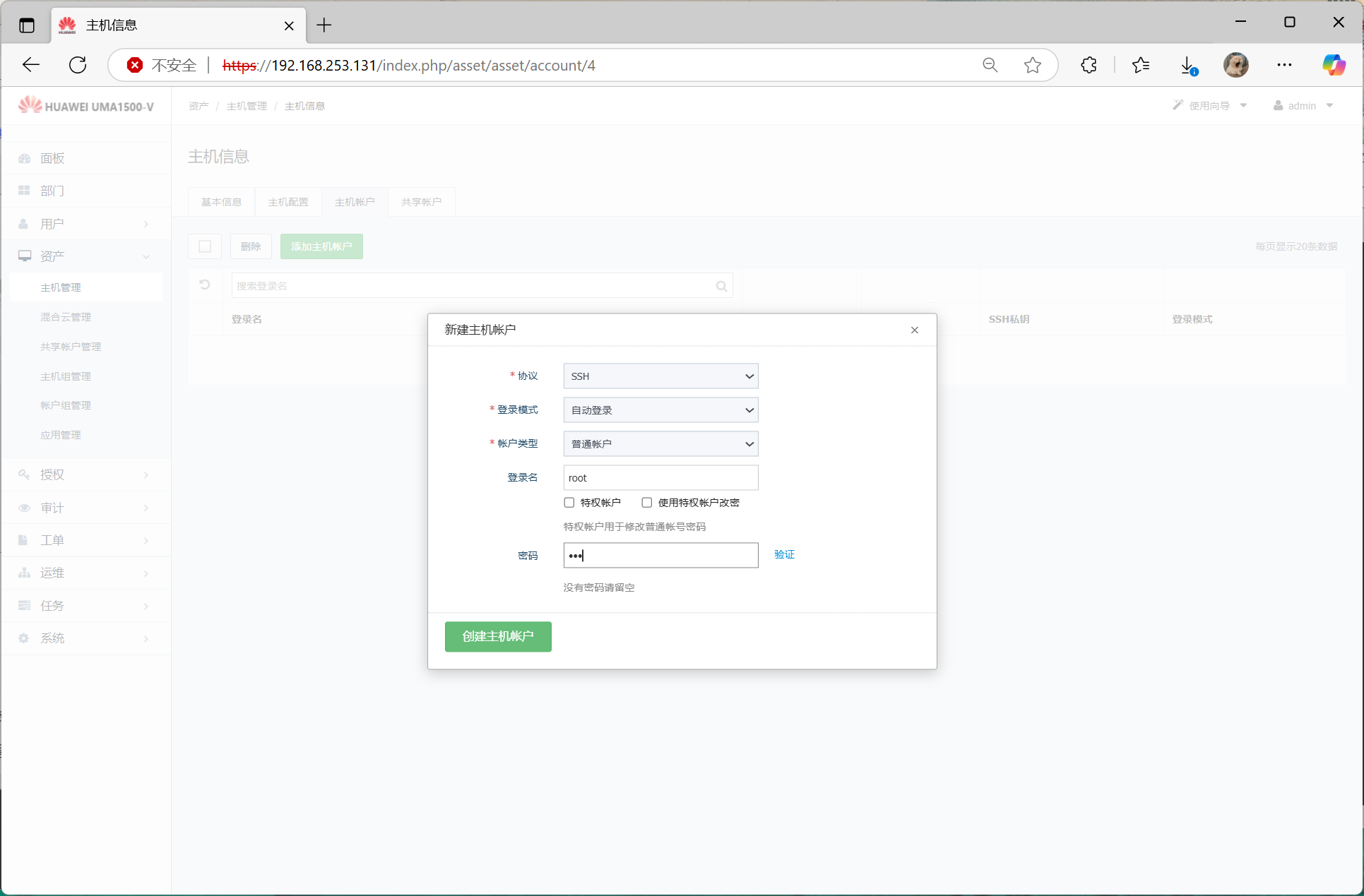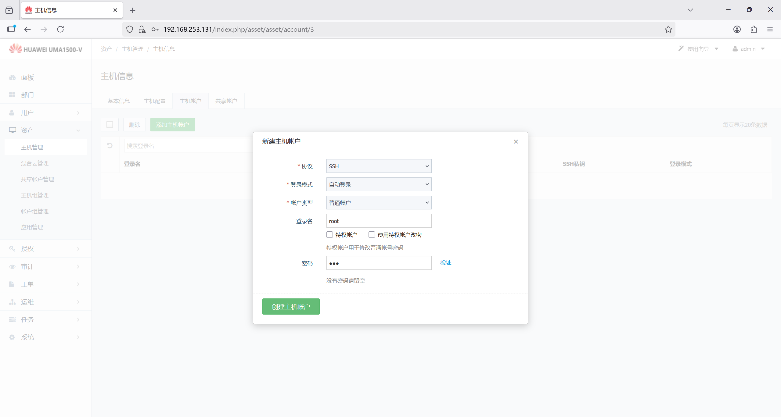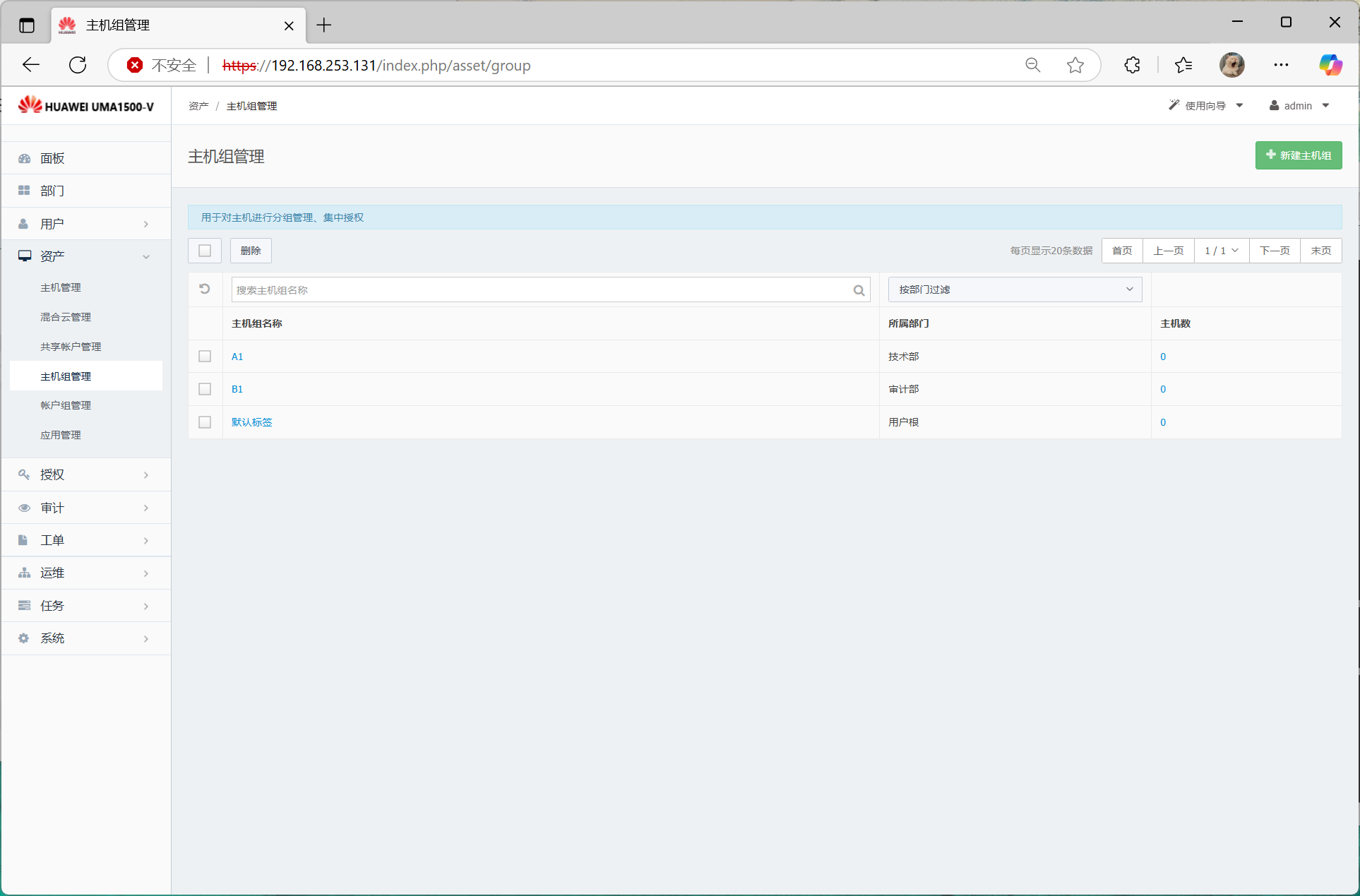 6、依次创建部门、用户、主机组