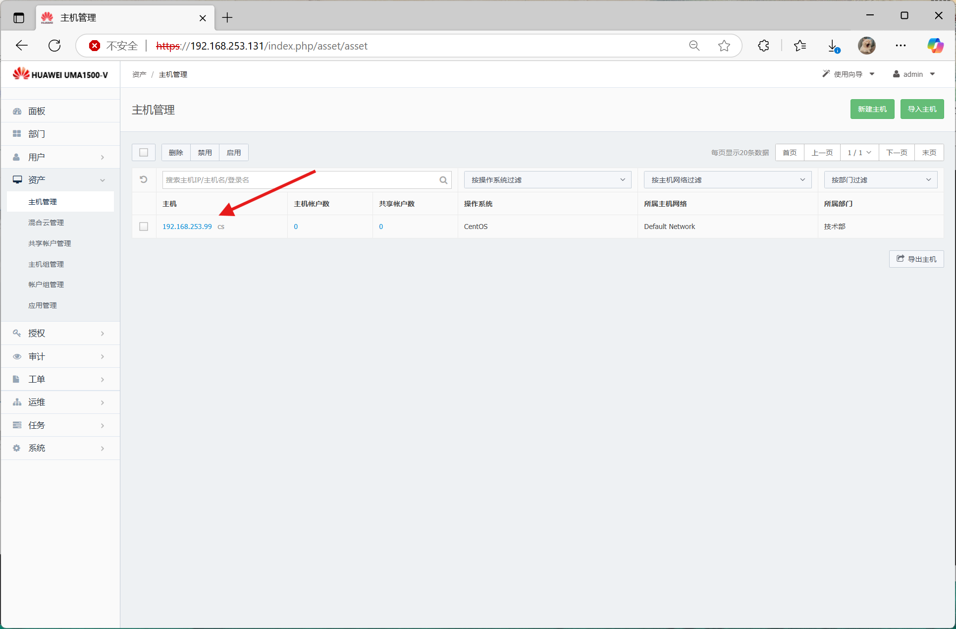 新建主机后点击IP