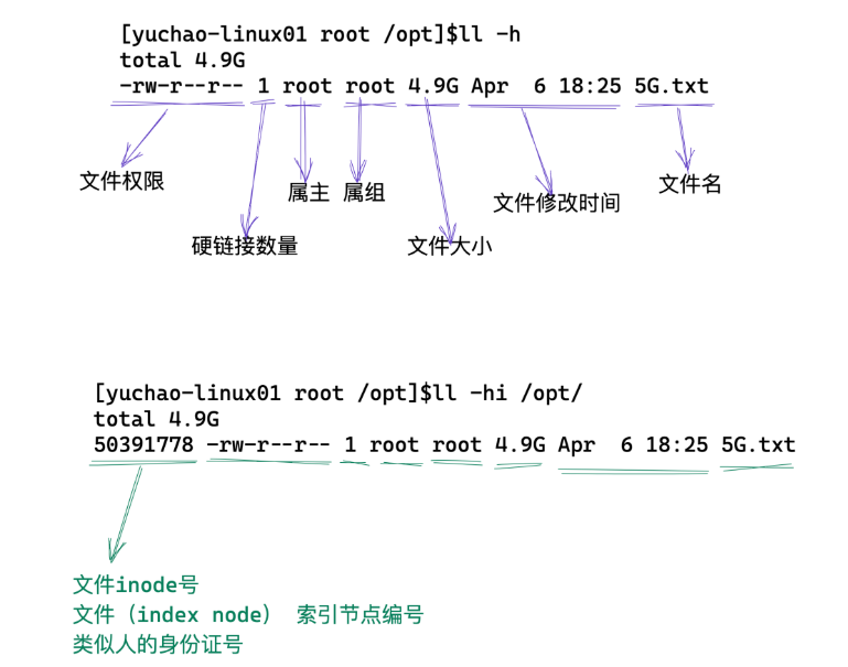 文件储存在硬盘上,硬盘的最小存储单位叫做"扇区"(Sector)。每个扇区储存512字节(相当于0.5KB)。操作系统读取硬盘的时候,不会一个个扇区地读取,这样效率太低,而是一次性连续读取多个扇区,即一次性读取一个"块"(block)。这种由多个扇区组成的"块",是文件存取的最小单位。"块"的大小,最常见的是4KB,即连续八个 sector组成一个 block。当你机器上有大量的无用的小文件,空文件,白白消耗inode数量,touch 创建新文件,想分配inode编号,你会发现发现不够用了,显示no space for disk
