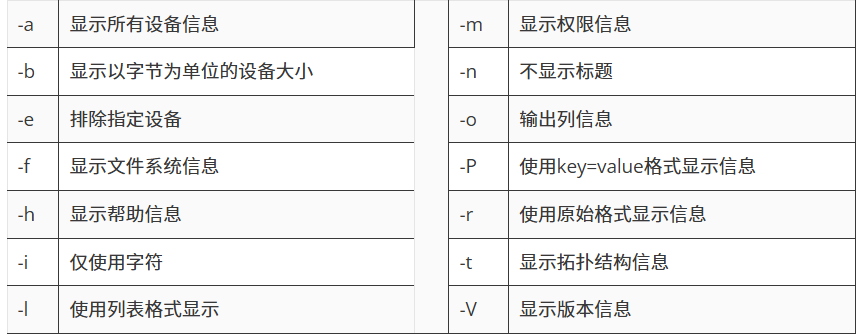 -l 显示已加载的文件系统列表(同直接执行mount)