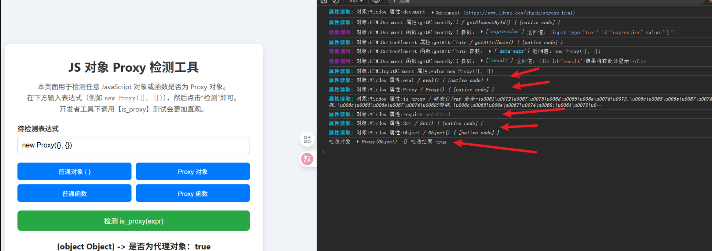 它是关于proxy代理对象的检测。