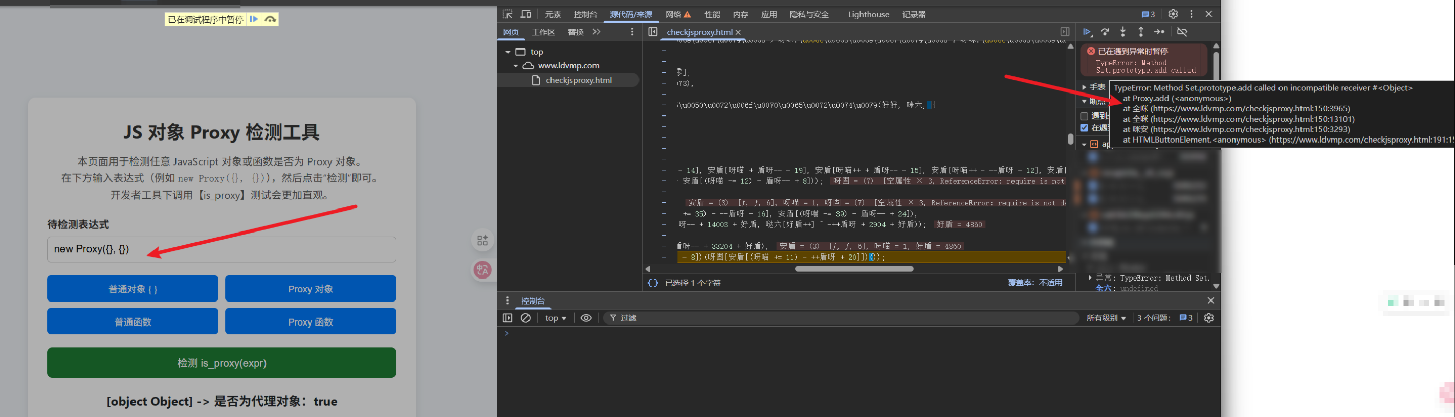 继续看看检测不代理的对象报错看看对比