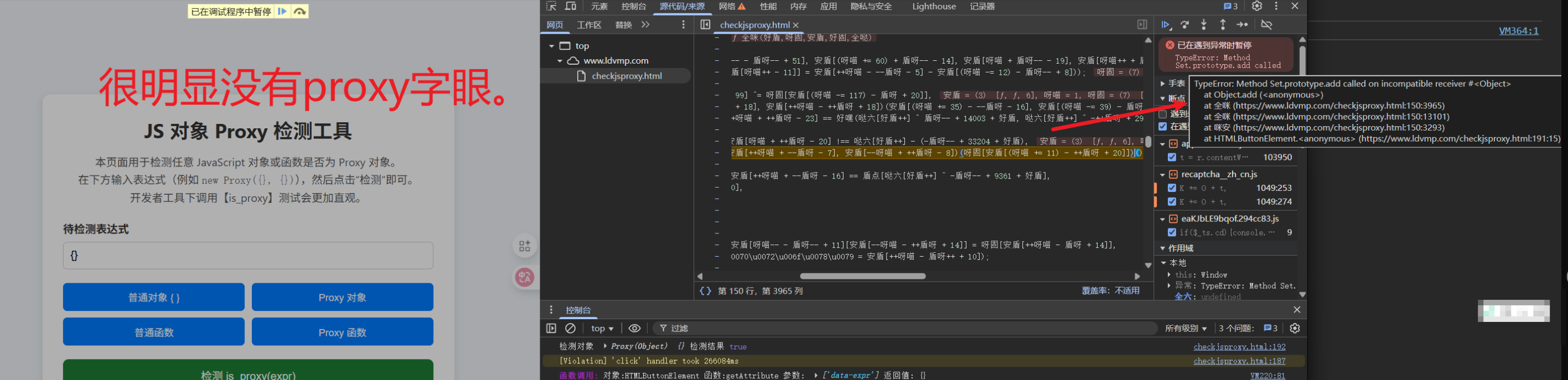 暂时没有啥思路,继续看看捕获报错代码,很好发现个报错代码有proxy相关字眼。