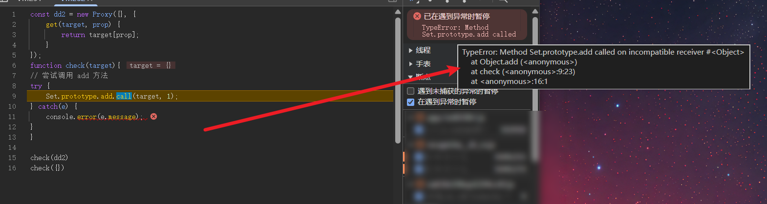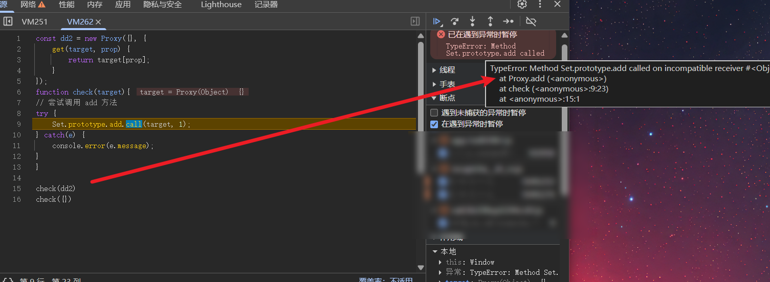 然后自己写一下Set.prototype.add去调用代理对象和非代理对象发现。